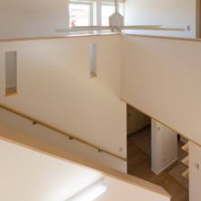 ・エアコン1台のみの全館冷暖房で、1階と2階の温度差が0℃になるように設計したパッシブデザイン。電気代が半分以下の超省エネ住宅。風の通りを計算した窓の配置、大きさの選択など、自然の力を最大限に生かせるように配慮した。